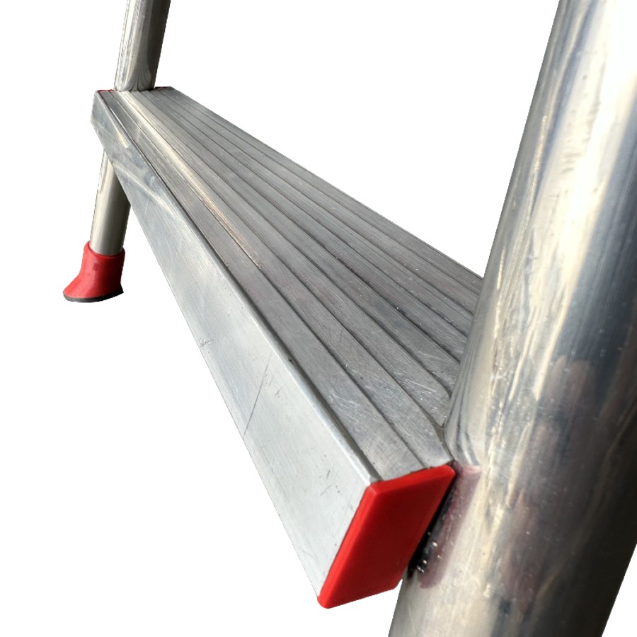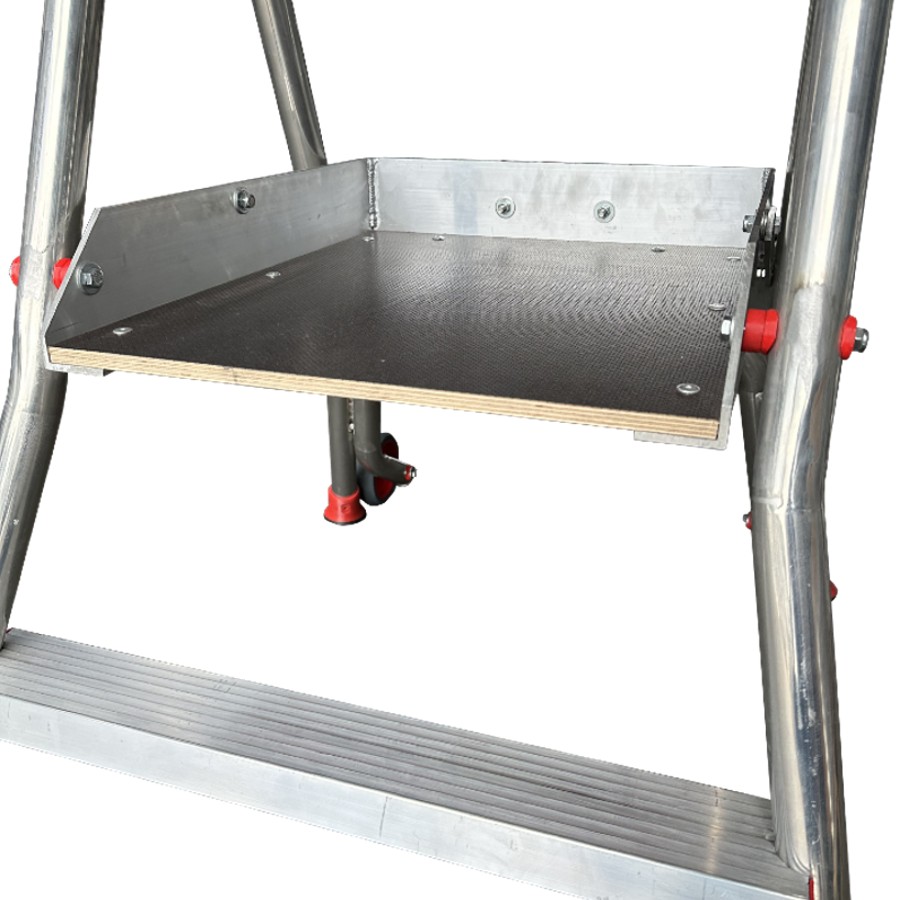 Escadote profissional com ampla plataforma de alumínio.