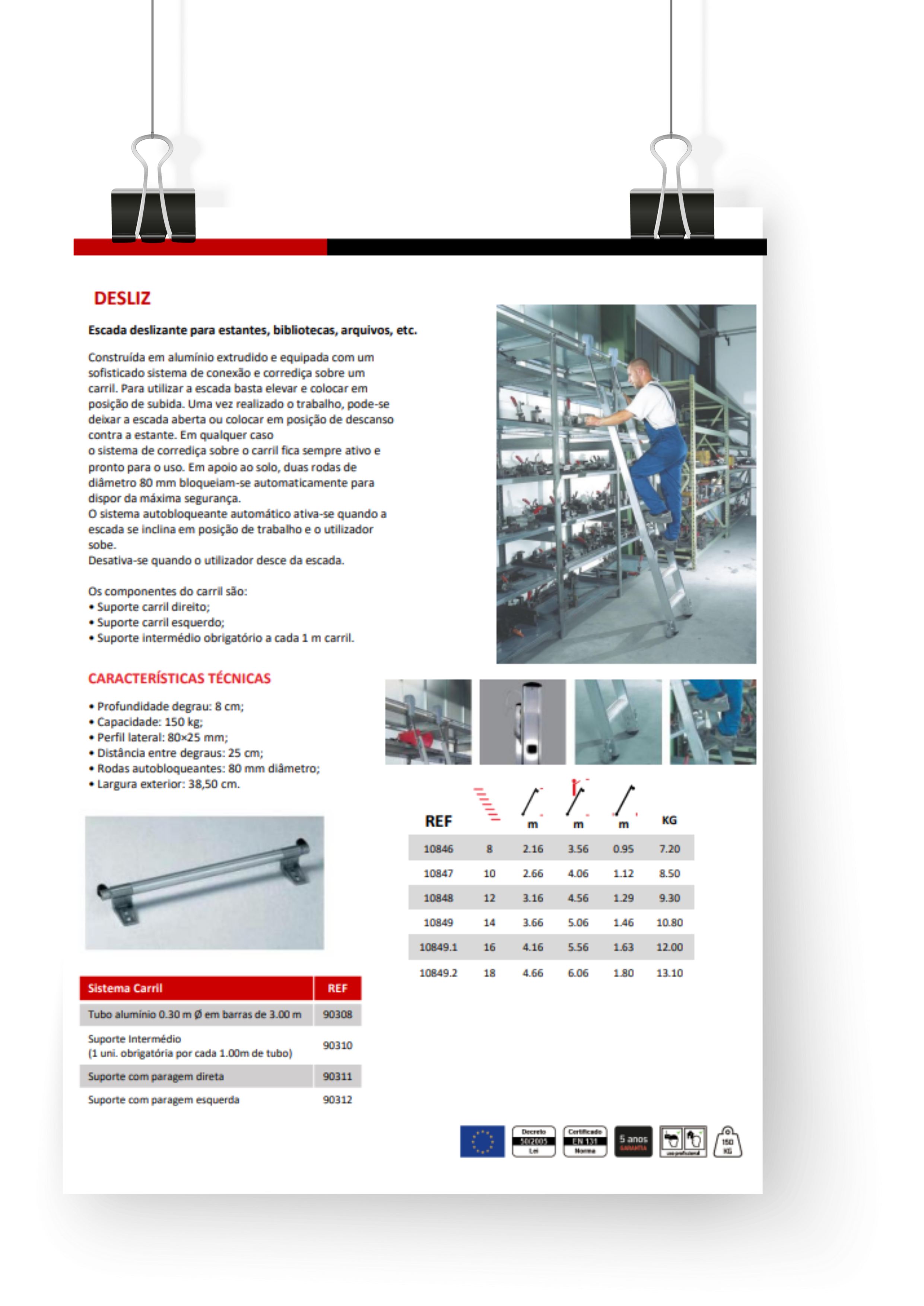 Escada deslizante para estantes, bibliotecas, arquivos, etc.
