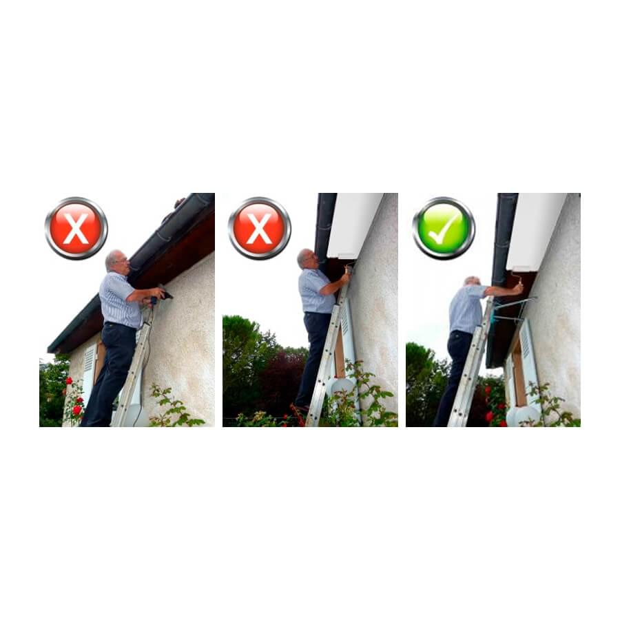 Ideal para tarefas que requerem separar a escada da parede. Permite ao operário trabalhar a uma certa distância da parede e ao mesmo tempo proporciona um apoio estável e seguro na escada. Fácil de usar, serve para qualquer escada de perfil máximo 84 mm. Indicado para realizar tarefas de pintura e limpeza.
