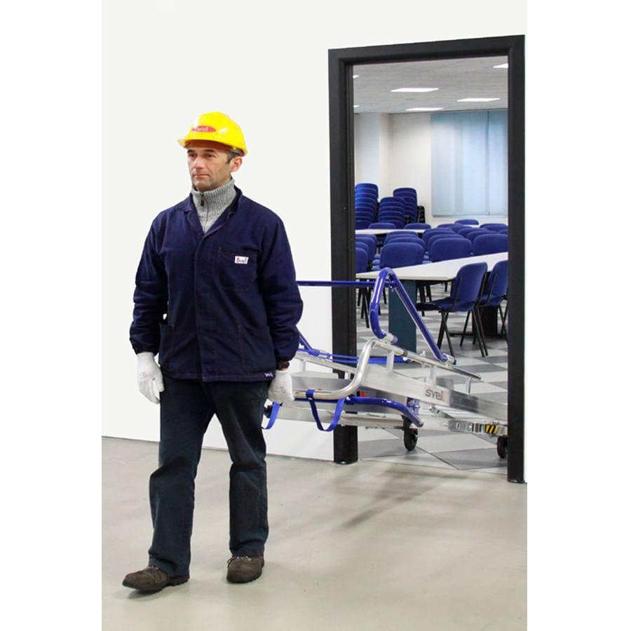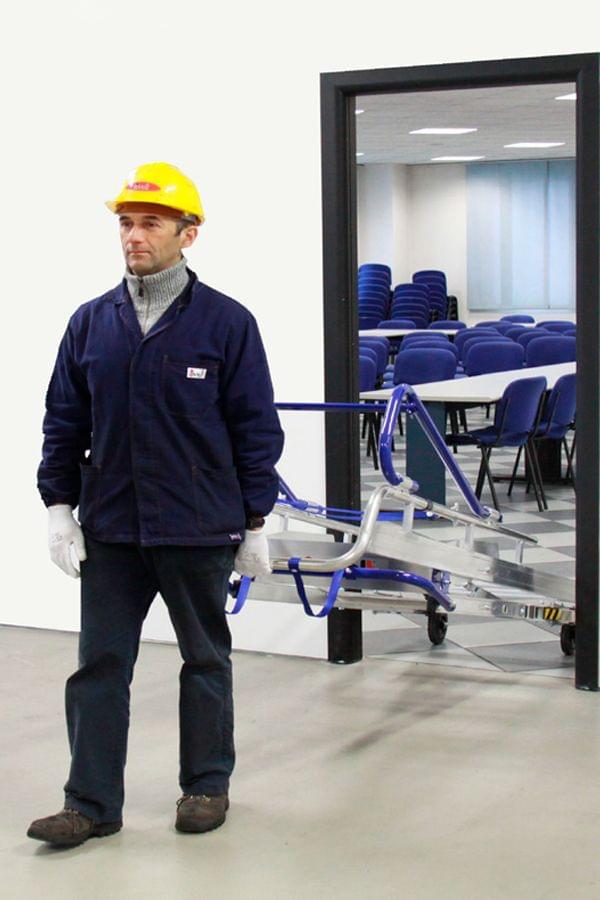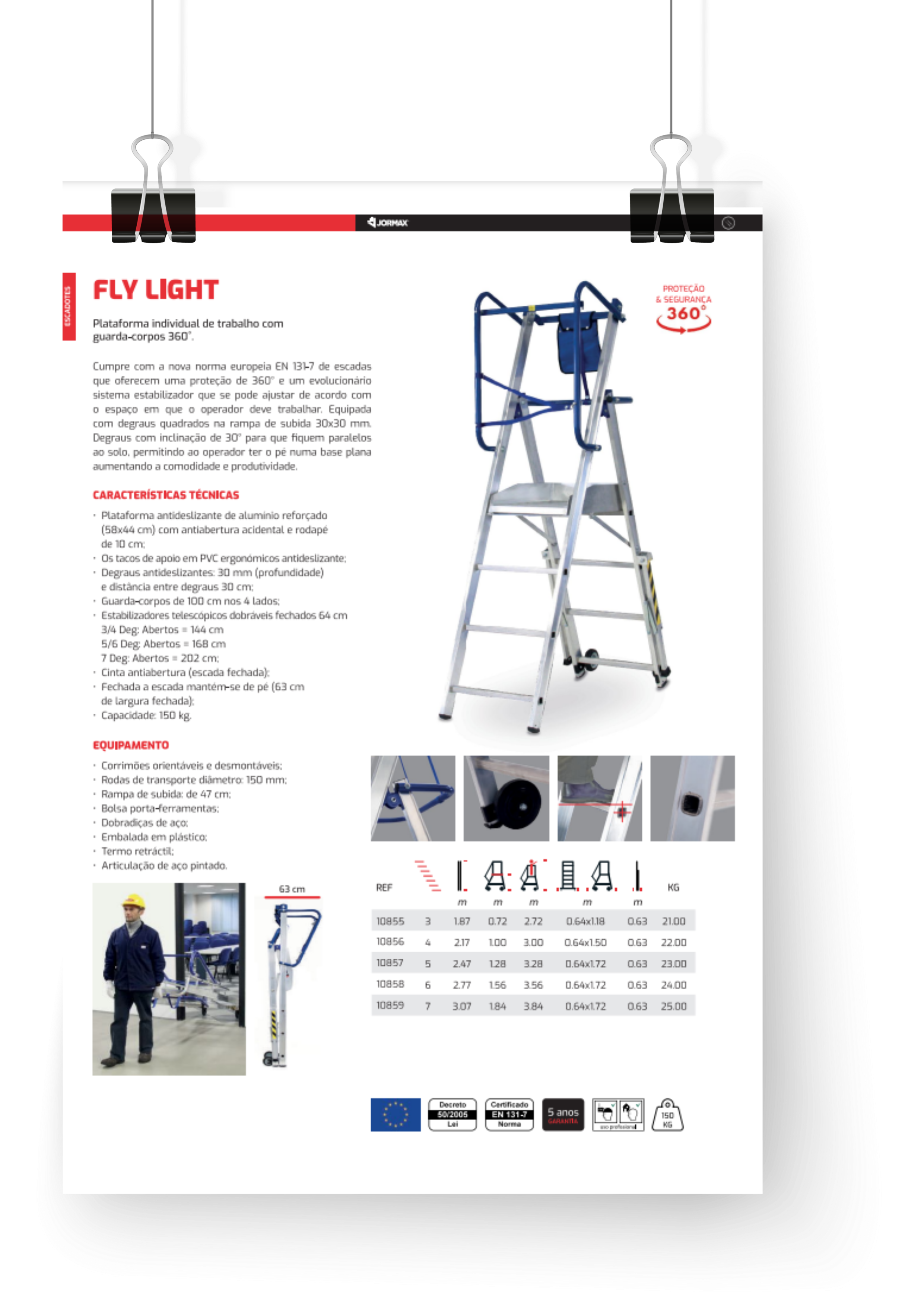 Cumpre a nova norma europeia EN 131-7 de escadotes que oferecem uma proteção de 360˚ e um evolucionário sistema estabilizador que se pode ajustar de acordo com o espaço em que o operador deve trabalhar. Equipada com degraus quadrados na rampa de subida 30×30 mm. Degraus com inclinação de 30˚ para que fiquem paralelos ao solo, permitindo ao operador ter o pé numa base plana aumentando a comodidade e produtividade.
