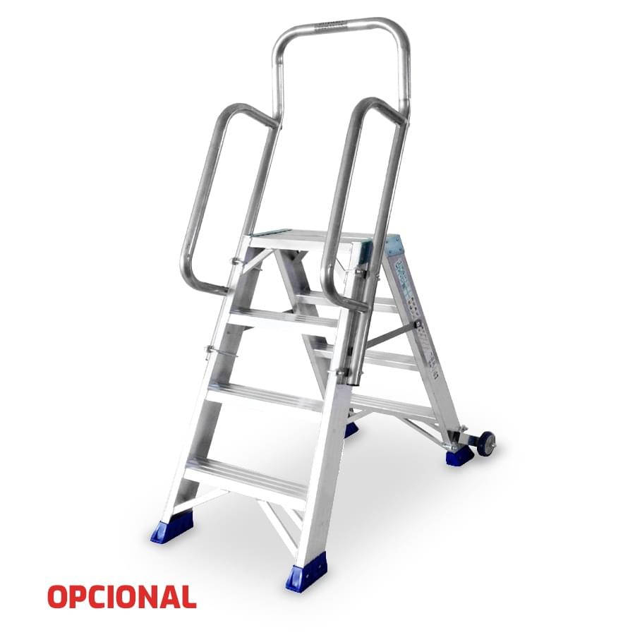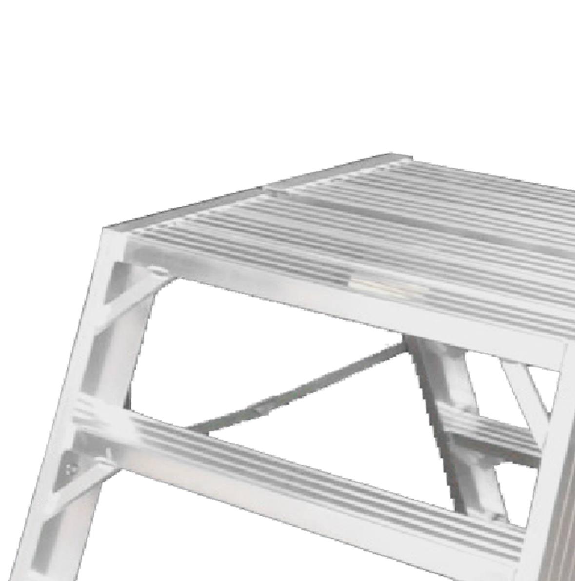 Escadote de dupla subida com degraus largos e ampla plataforma 700X525cm.