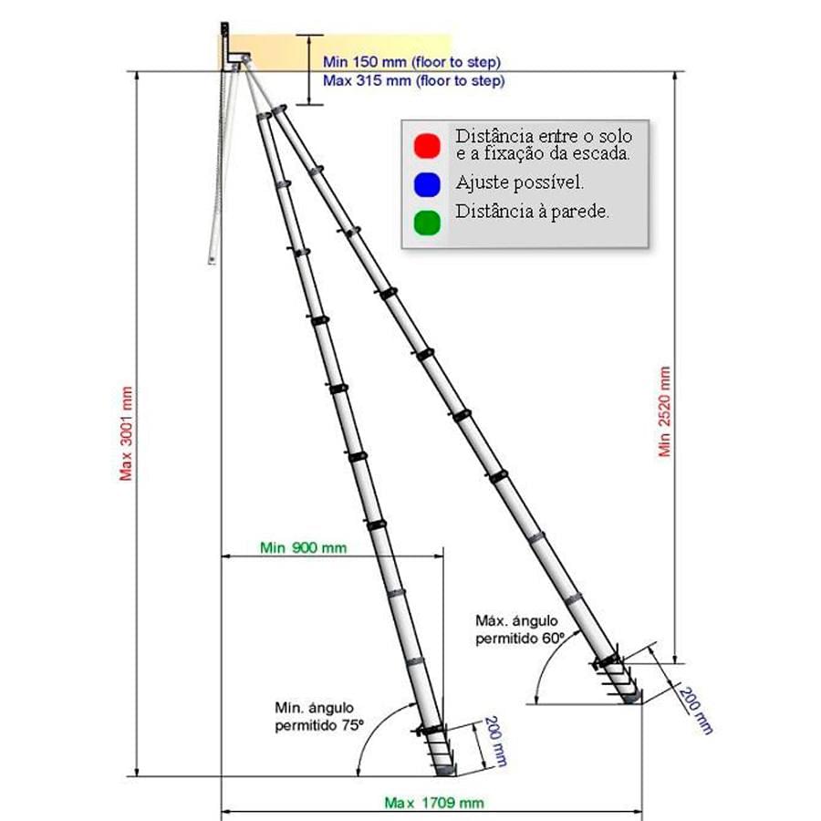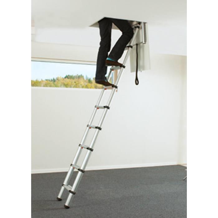 Escada de sótão telescópica com fecho automático.