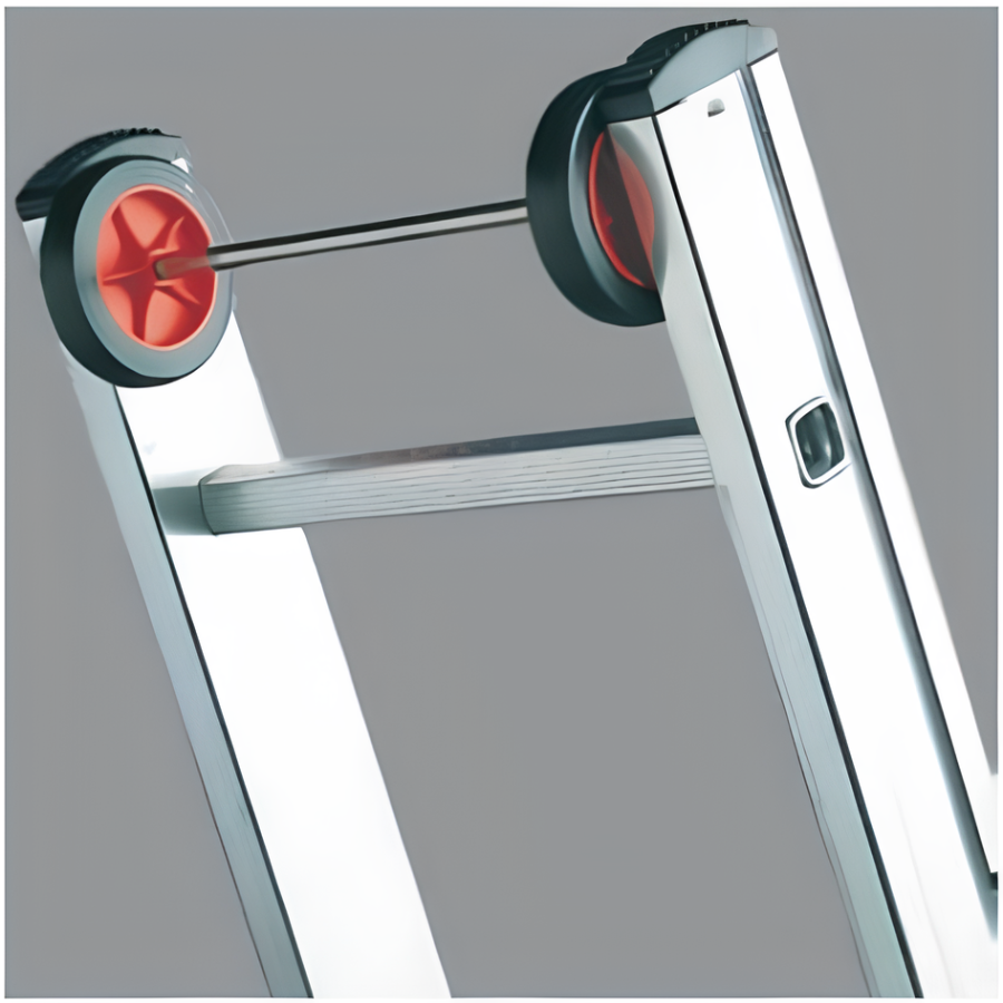 Série de escadas transformáveis, de uso profissional, fabricadas em alumínio nervurado extrudido mediante um avançado sistema de encaixa automático, que fixa os degraus aos montantes de movo duradouro. São escadas de gama alta, perfeitamente equipadas, de máximo conforto e ótimas dimensões. Disponível em duas e três partes, utilizando-se como posição de escada. As escadas com sistema de corda apenas se podem utilizar em posição de encosto.