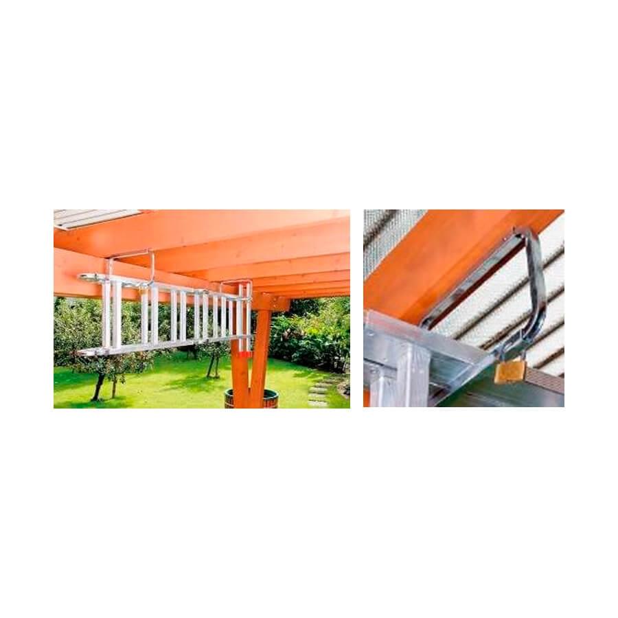 Acessório universal para segurar escadas, fabricado em aço zincado. É um acessório que se monta facilmente em qualquer superfície. Pode fixar-se à parede ou teto, já que se coloca de forma vertical ou horizontal.