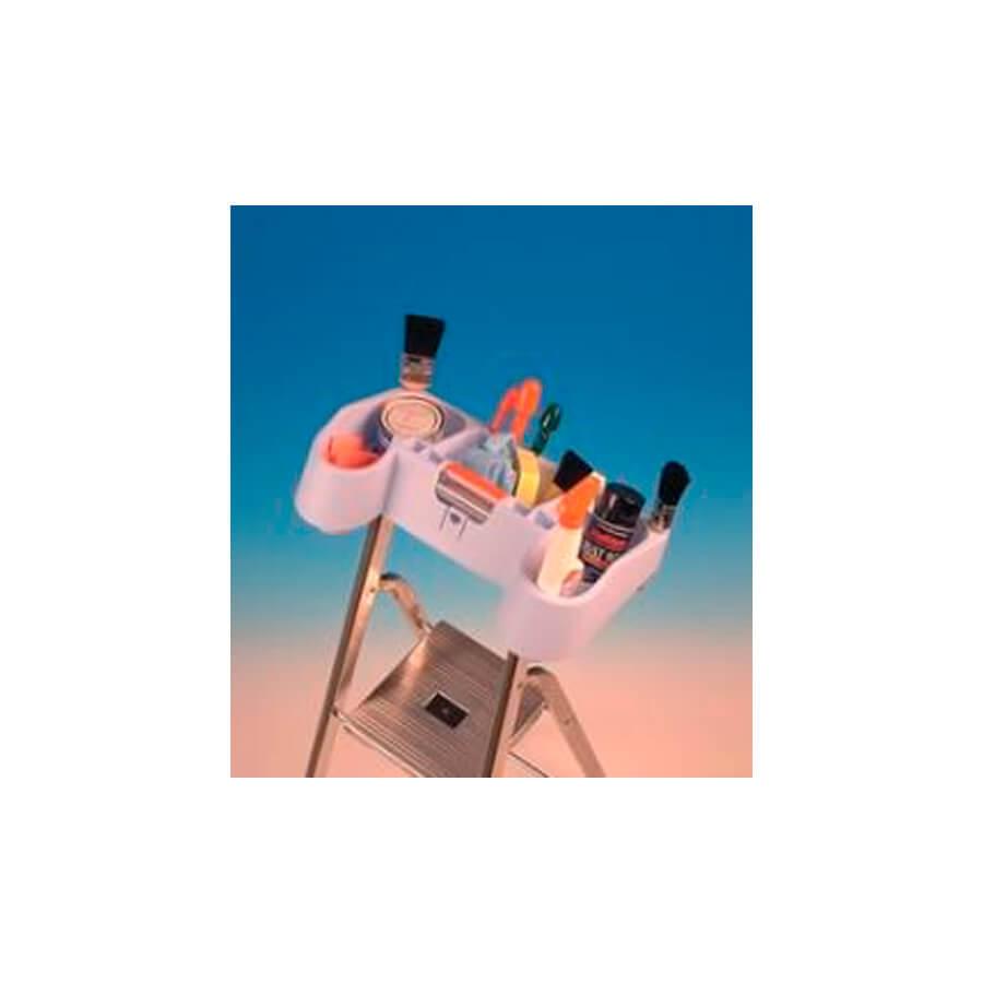 Porta-ferramentas universal para escadotes, fácil de usar e montar. Fabricada em PVC para ter sempre as ferramentas à disposição sem ter que se mover do posto de trabalho. Encaixa-se na parte superior do arco do escadote de alumínio. Modelo para uso em escadotes com parte superior arredondada.
